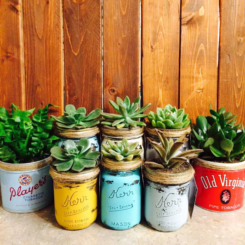 Another fave local small business of mine is The Jar Junquie. Succulents + mason jars and antique tobacco tins = brilliant. She is located in Chilliwack , BC, and does custom orders. I have yet to own one of her creations, but it's on my shopping list.